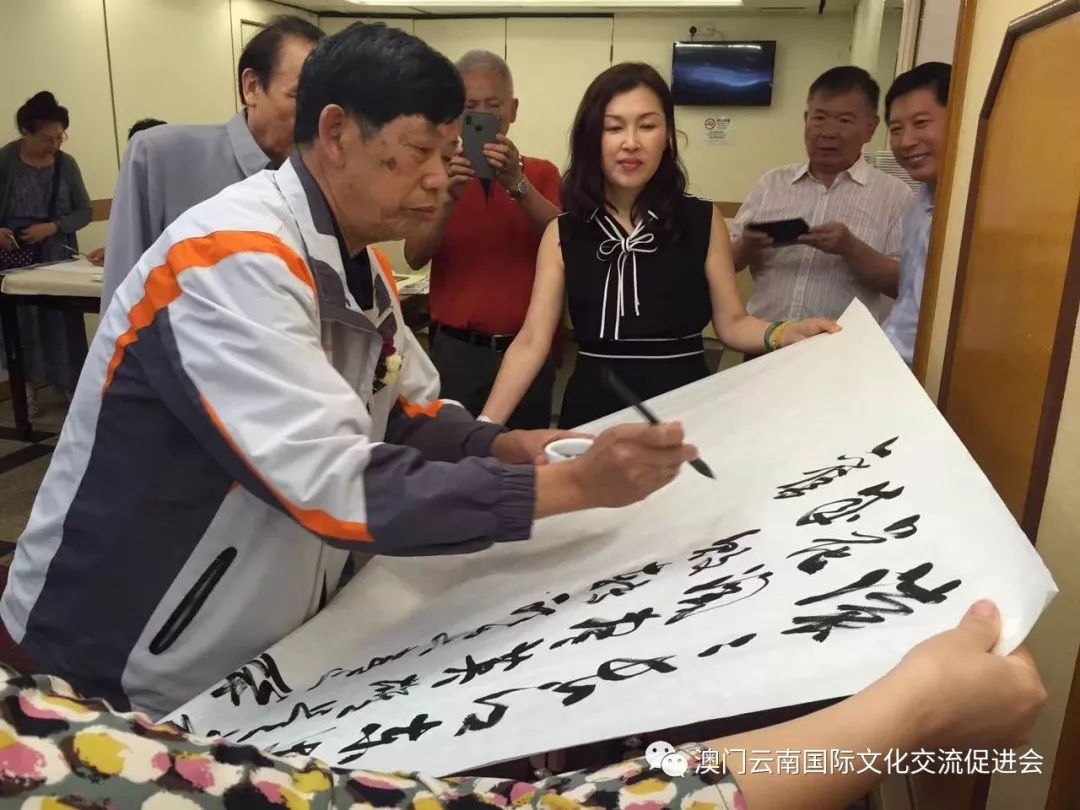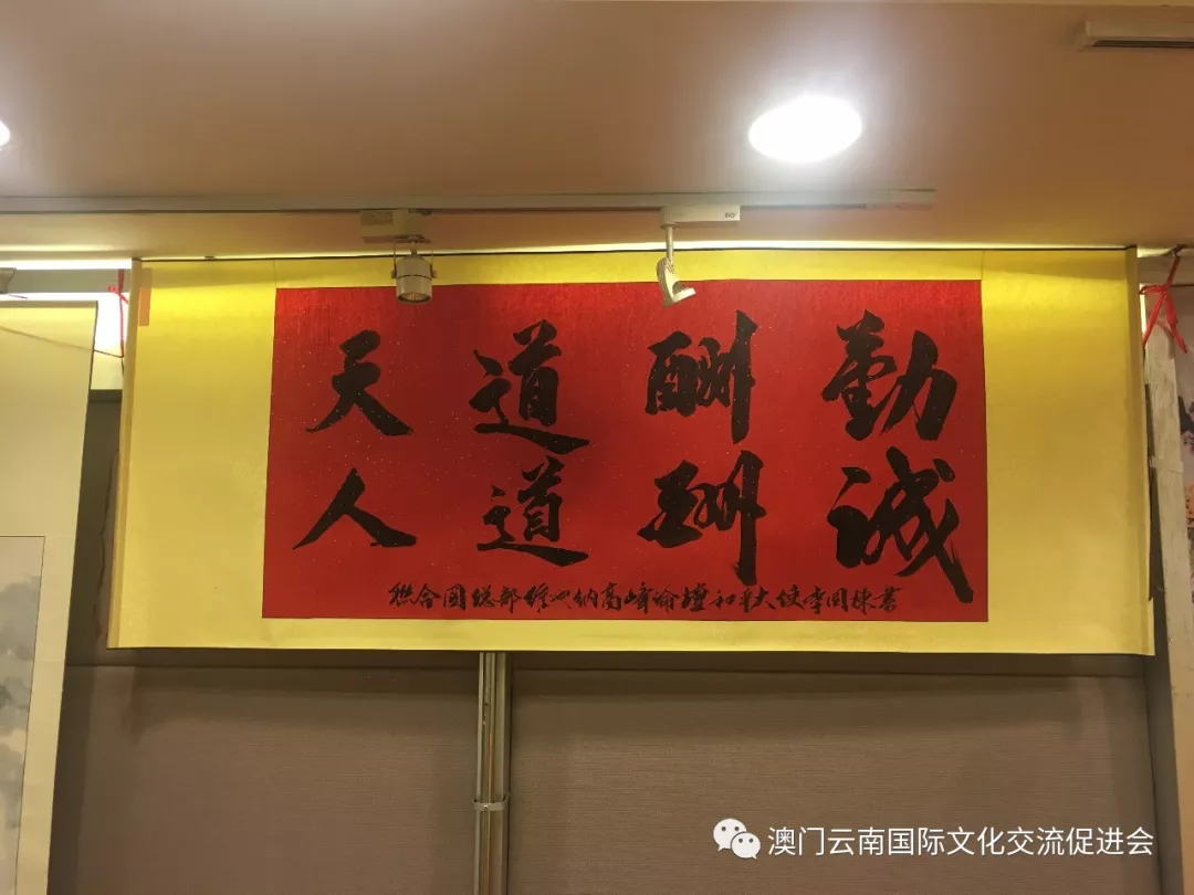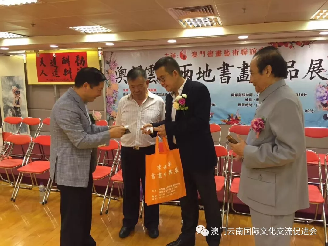 澳门云南国际文化交流促进会与澳门书画艺术联谊会,为传承中华优秀传统文化,在近年来多有合作,半个月前,云南还邀请了以李秋平为代表的部分澳门书画艺术家到昆明参加“翰墨牵两岸.四地一家亲一一庆祝中华人民共和国成立69周年两岸四地书画艺术展”,同时又举办了“嶺南風韻一一李秋平个人书画展。半个月后的今天,云南书画艺术家熊华君,彭放,刘宗骐,周亮,刘红,张学彦,严风扬,卢三星,杨林非,翟艳娜,蔡林含又与澳门的书画艺术们在这里相聚,这是一件非常开心的大喜事!